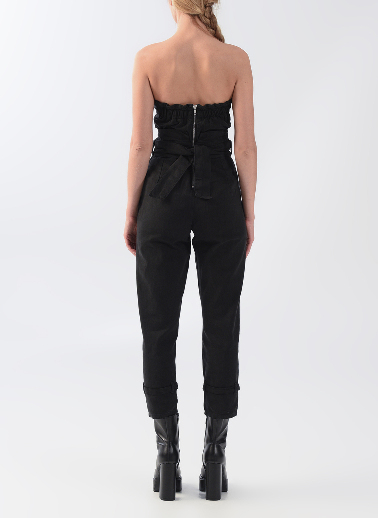 RG-702 Straplez siyah denim tulum