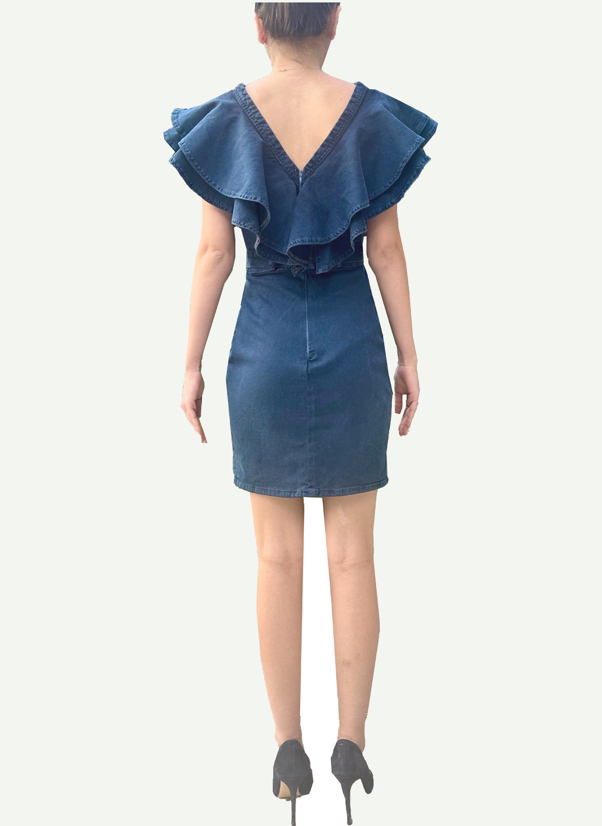 RG-108 Volanlı Mini Denim Lacivert Elbise