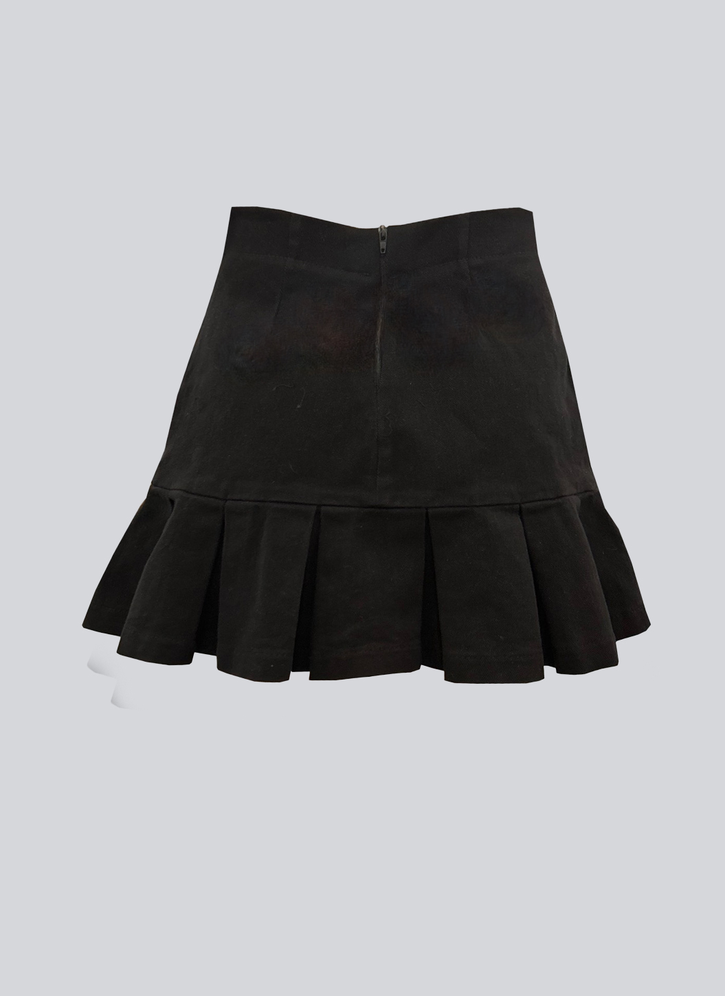 Etek ucu pileli siyah denim etek