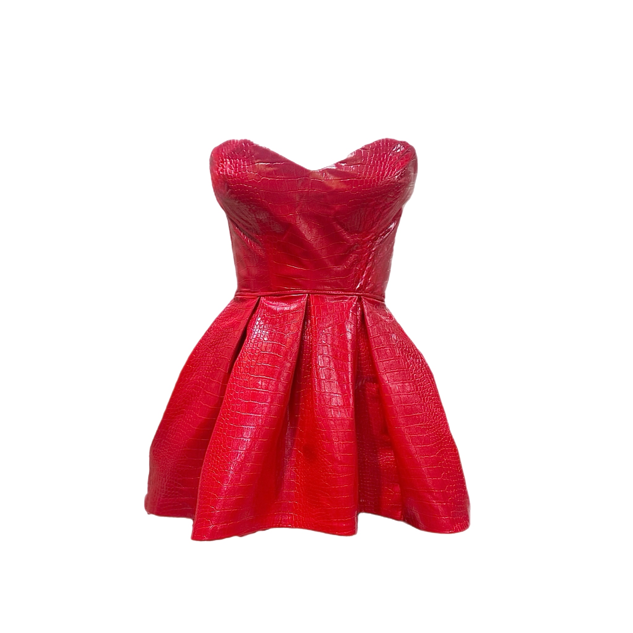 Straplez suni crocodile deri mini elbise