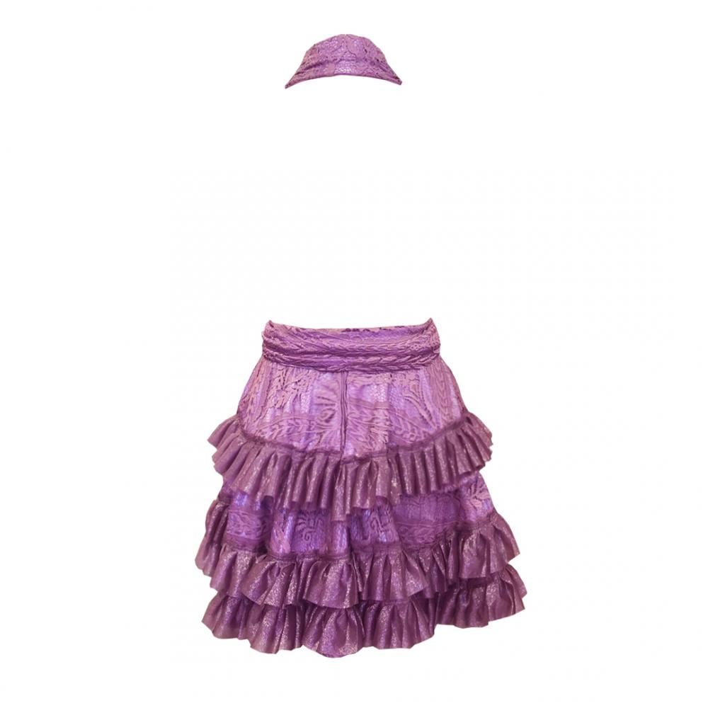 Fırfır detay lila dantel elbise