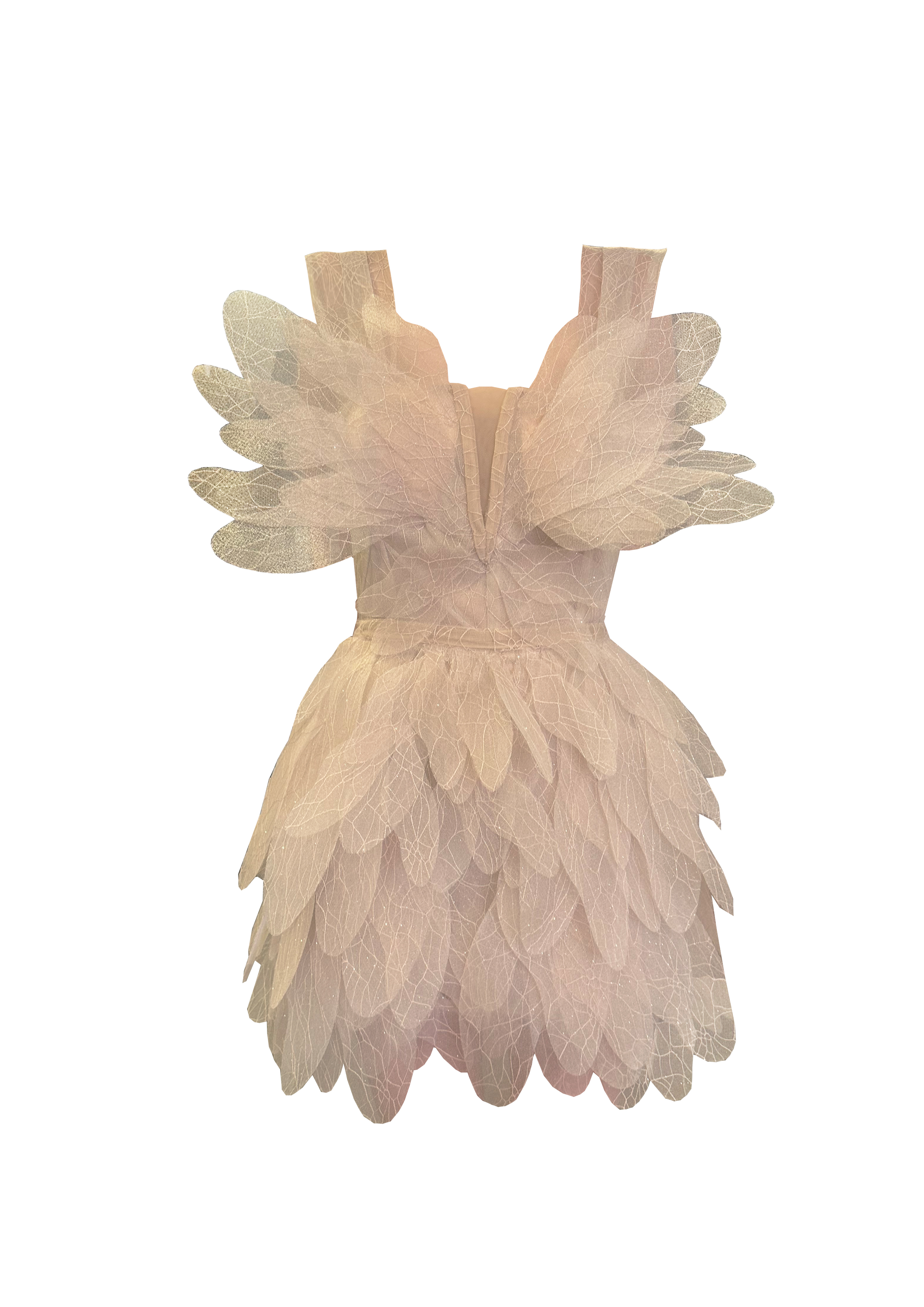 Kanat tasarım tül etek çıkmalı maxi elbise