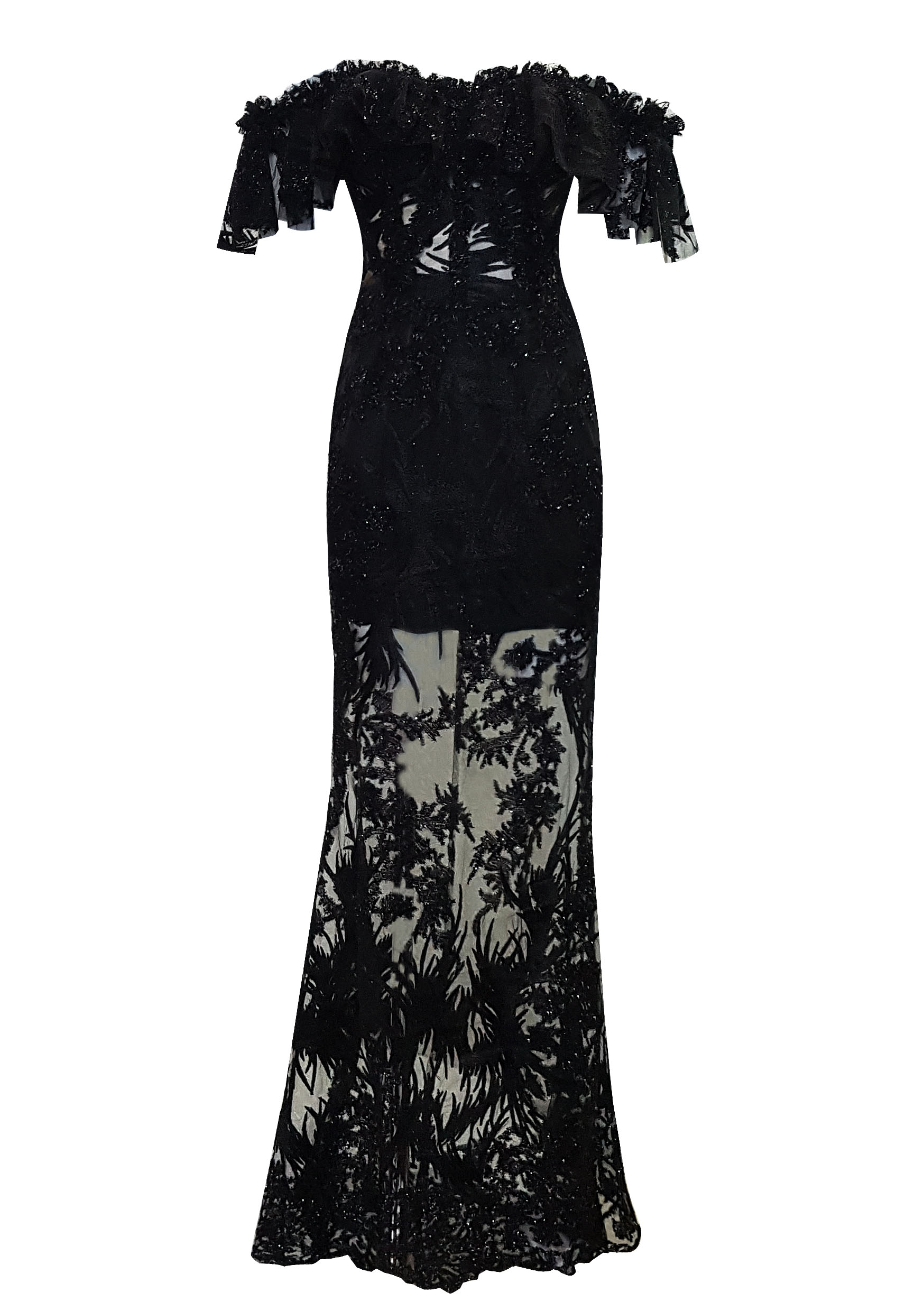 Straplez Transparan Detay Maxi Elbise KİRALAMA