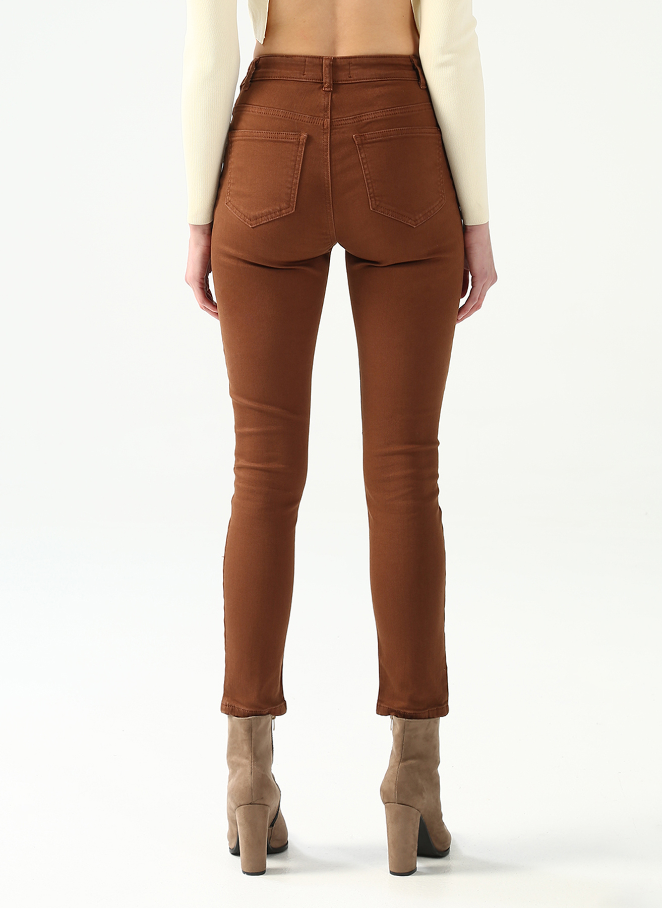 RG-205 Korsaj detay kahverengi slimfit denim pantolon