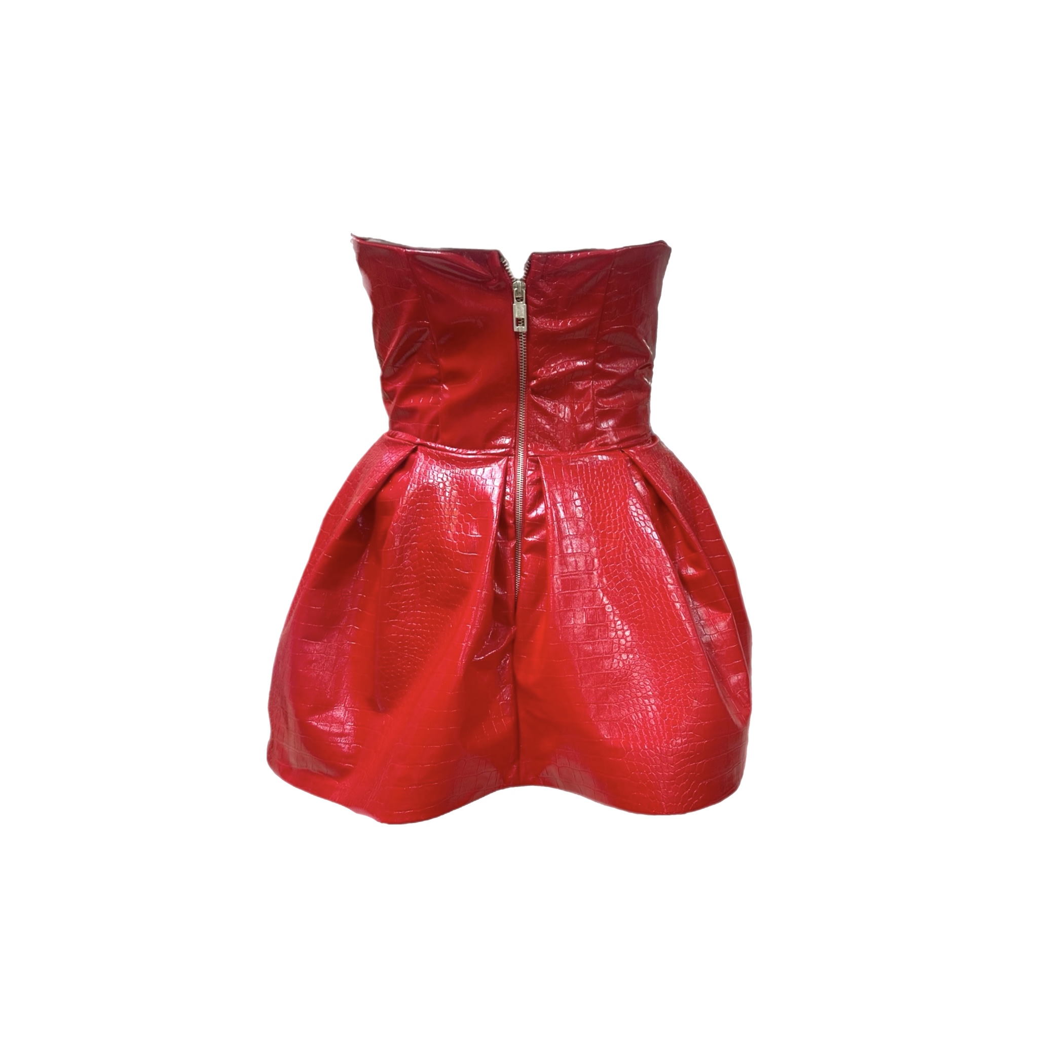 Straplez suni crocodile deri mini elbise