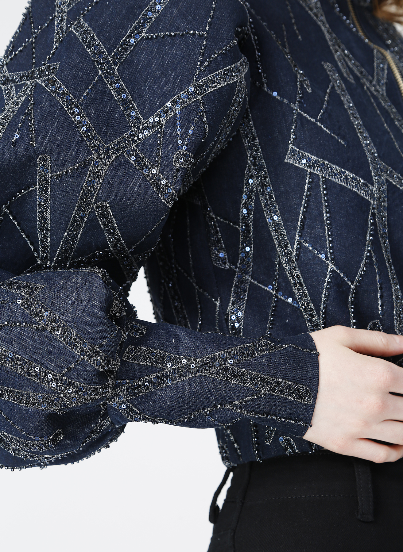 RG-600 Taş tül kaplama geniş manşetli karpuz kol denim mont