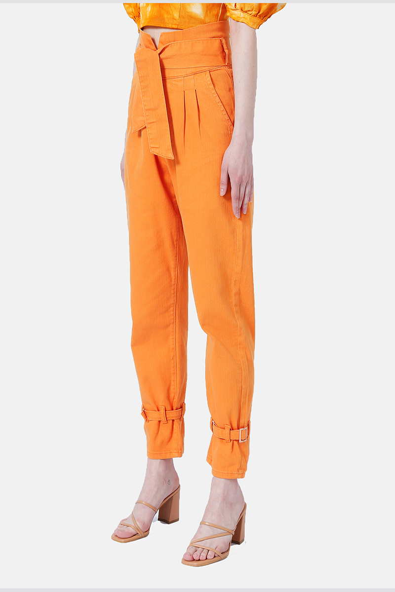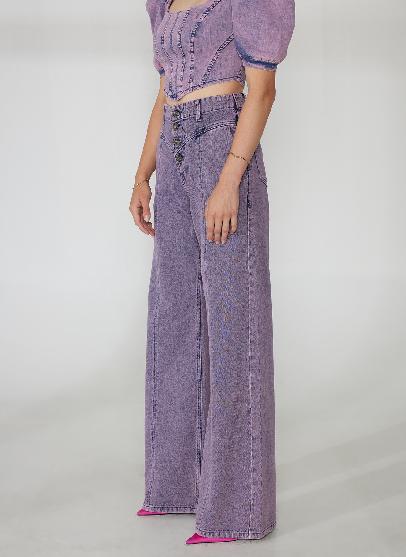 RG-209 Korsaj detay orta bel bol kesim pembe pantolon