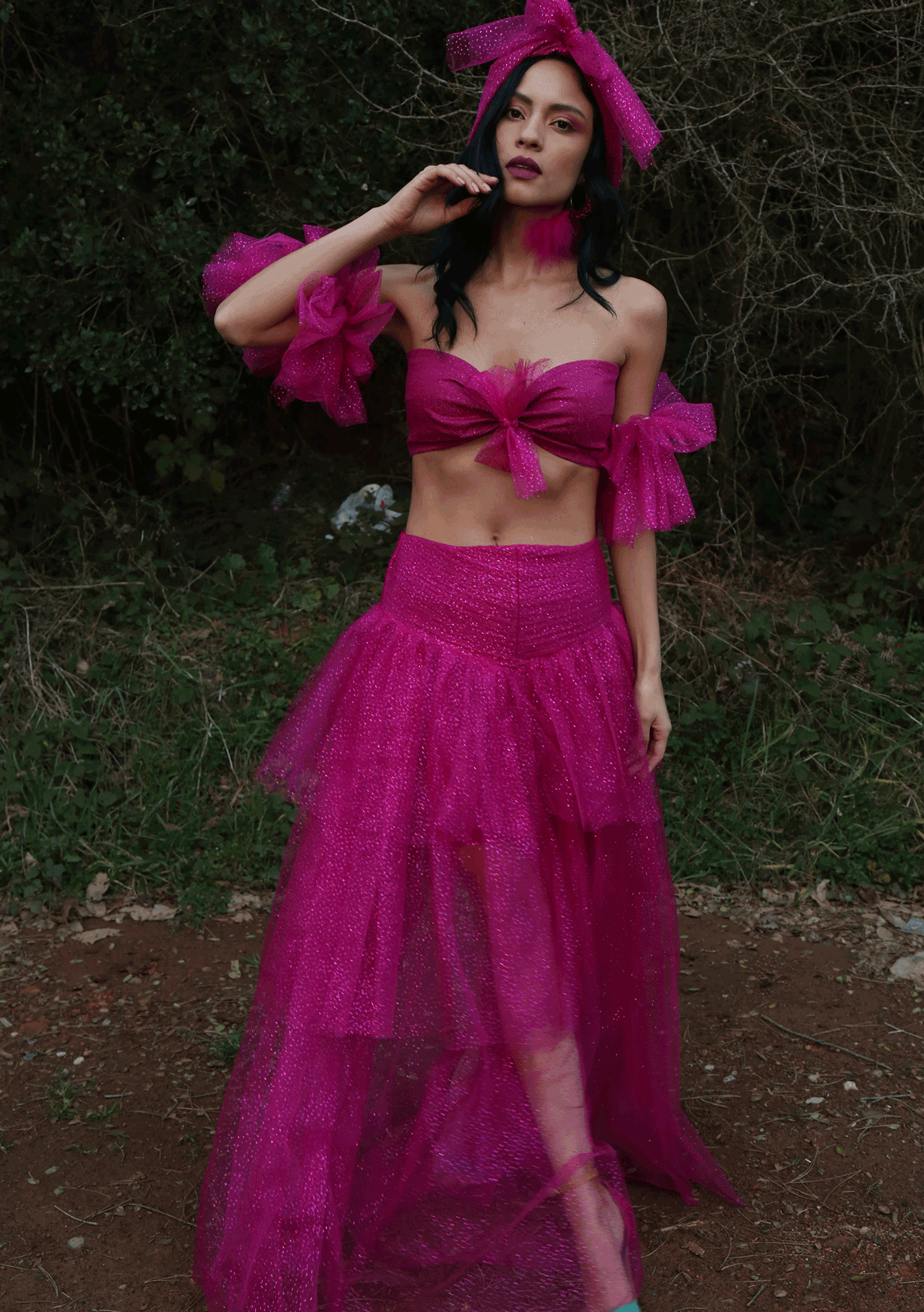 Fuşya fırfır detay maxi Elbise KİRALAMA